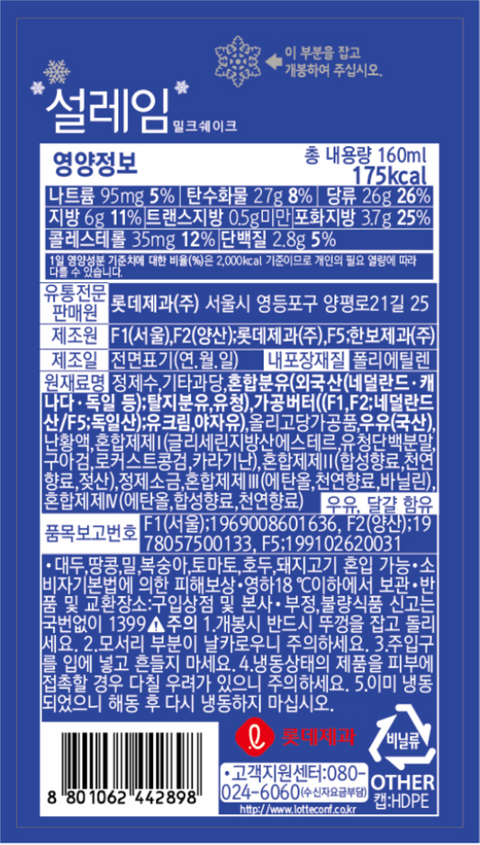 9203 Lotte Snow Ice Milk Shake 롯데 설레임 밀크쉐이크