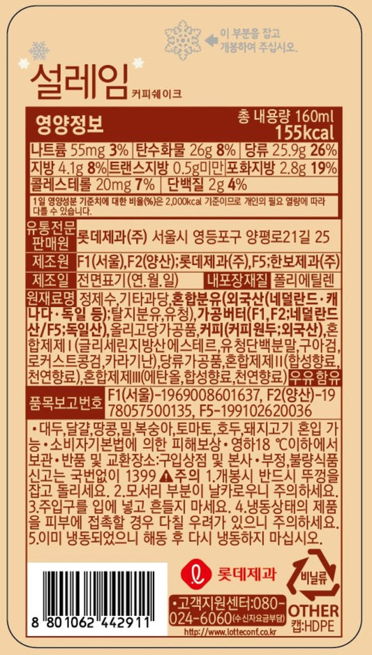 [Market Hot Deal] 9202 Lotte Iced Coffee Shake 롯데 설레임 커피쉐이크 35%OFF